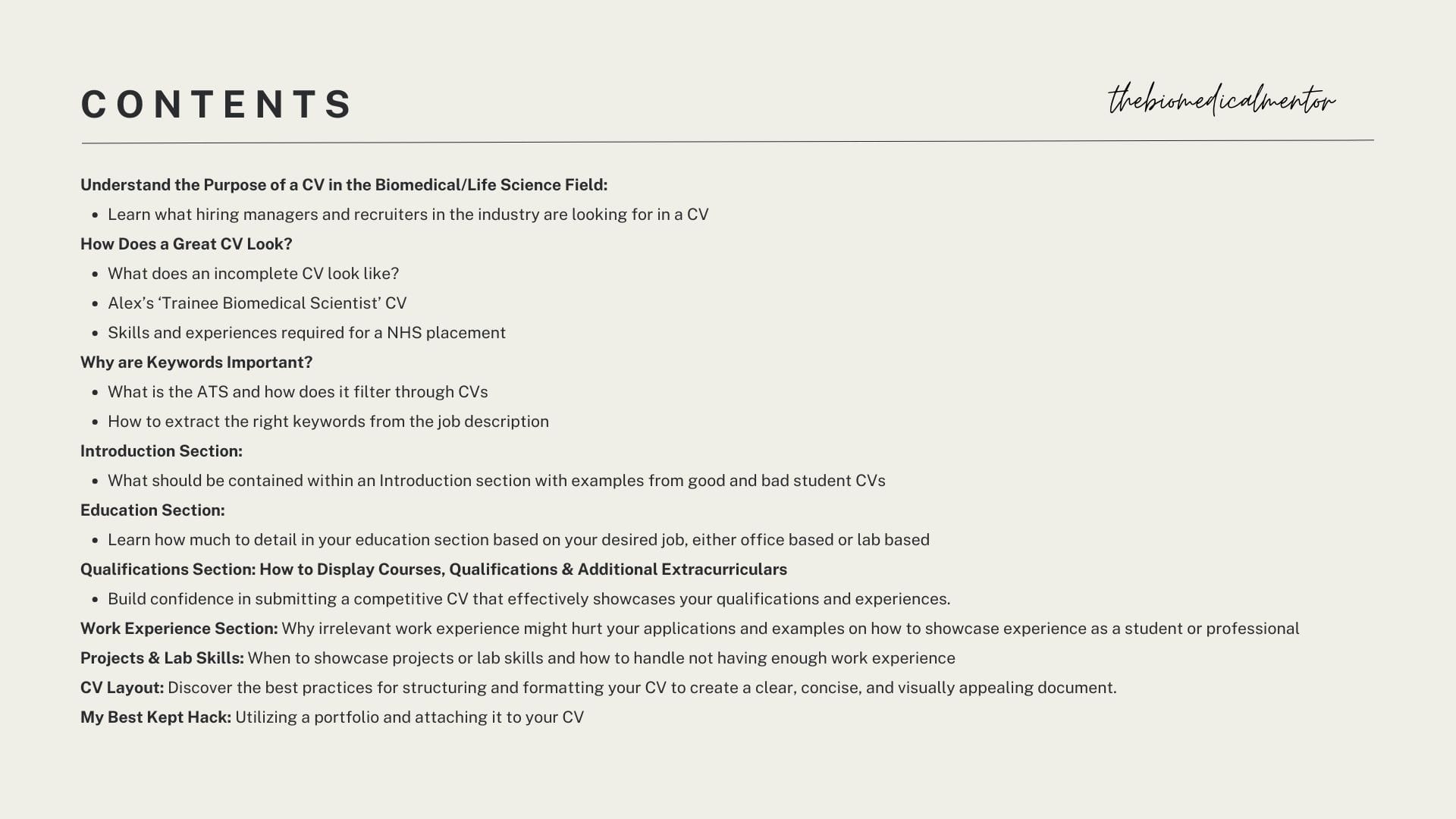 - Don’t know how to personalize your CV or adapt it based on the different roles available for Biomedical Science graduates