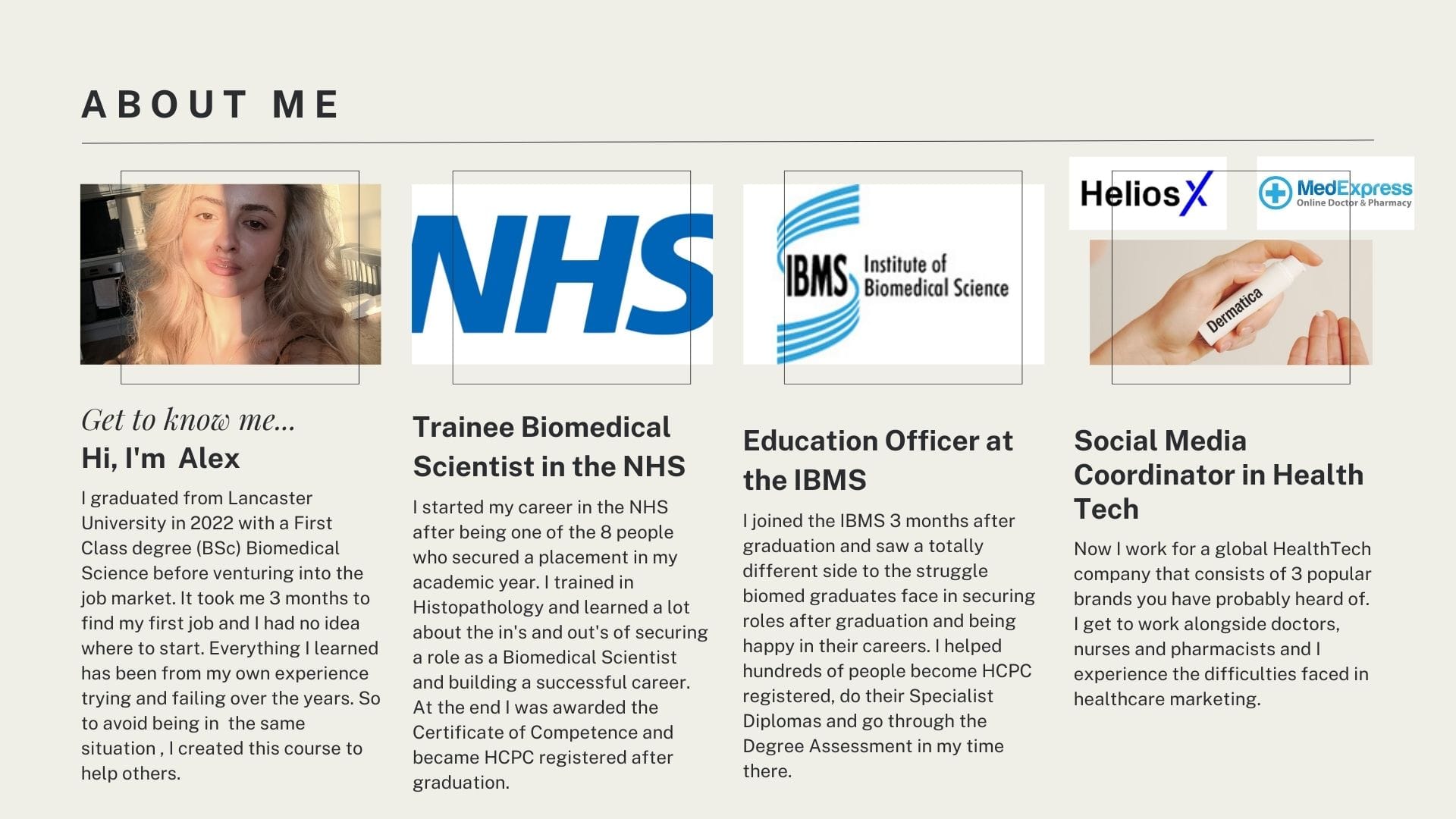 - Education Officer at the IBMS:After graduating, I joined the Institute of Biomedical Science (IBMS), where I gained unique insights into the challenges biomed graduates face.